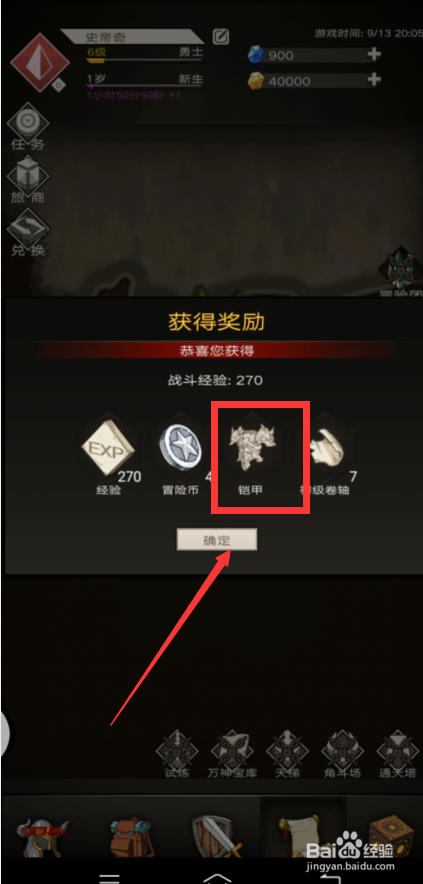 5、获得装备奖励点击【确定】按钮选项。
