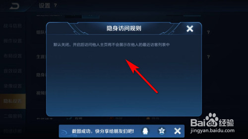 在隐私设置中,找到隐身拜候,点击旁边的符号查看