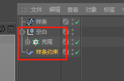 在属性中将复制的数目增添到13,则一个铁链的雏形就有了。选择样条画笔东西,在透视视图中随意绘制一条样条曲线。在对象面板中,选中克隆及其子级,快捷键alt+G建立一个群组。建立一个“样公约束”变形器并拖入群组中并连结在上面位置。