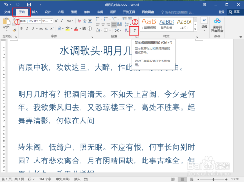 注重:①、“显示/埋没编纂标识表记标帜”按钮的布景为深灰色,暗示显示编纂标识表记标帜;没有布景色,暗示埋没编纂标识表记标帜。②、再点击一次“显示/埋没编纂标识表记标帜”按钮,回车符将会从头埋没。