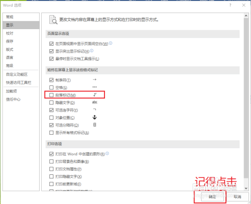 打消勾选【段落标识表记标帜】。