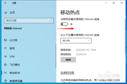 然后将移动热点的滑动按钮标的目的右滑动。