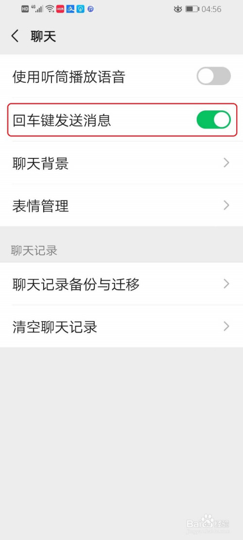 点击“回车键发送动静”右侧的开关。