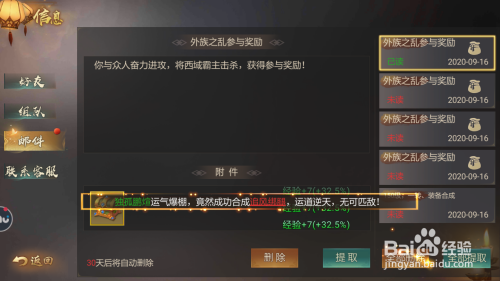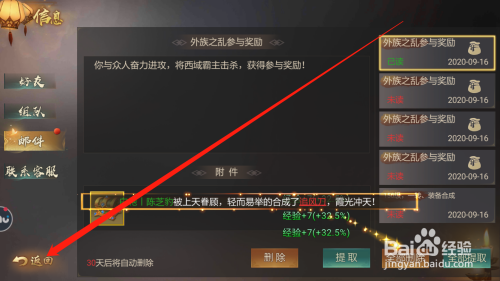 点击全数提取按钮,领取所有的邮件奖励
