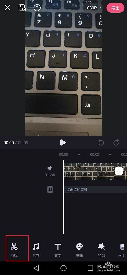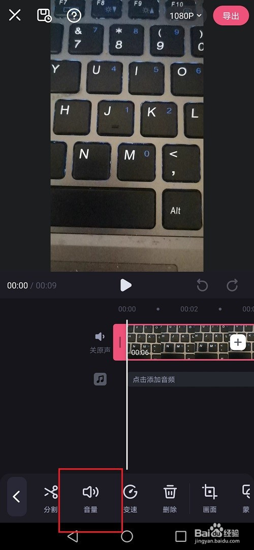 第四步进去剪辑之后,点击音量