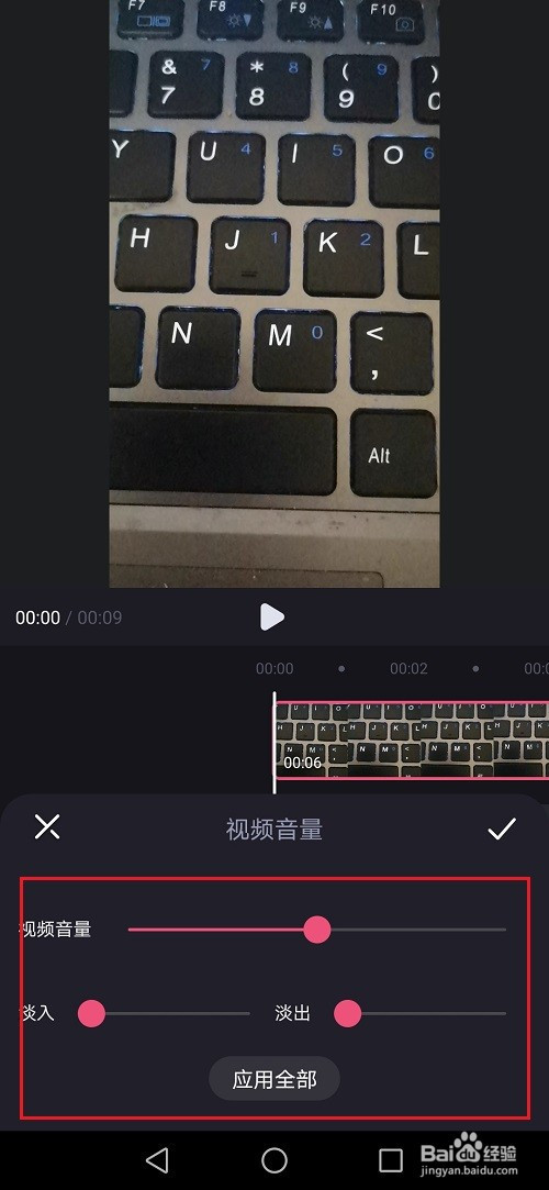 第五步点击音量之后,可以设置视频音量,按照需要设置