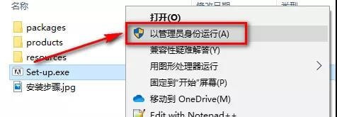 第二步我们把压缩包解压后,打开解压后的photoshop2020文件夹,找到Set-up并鼠标右键点击Set-up,然后鼠标点击以办理员身份运行