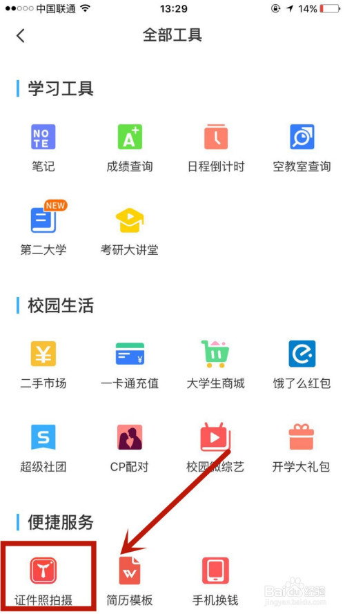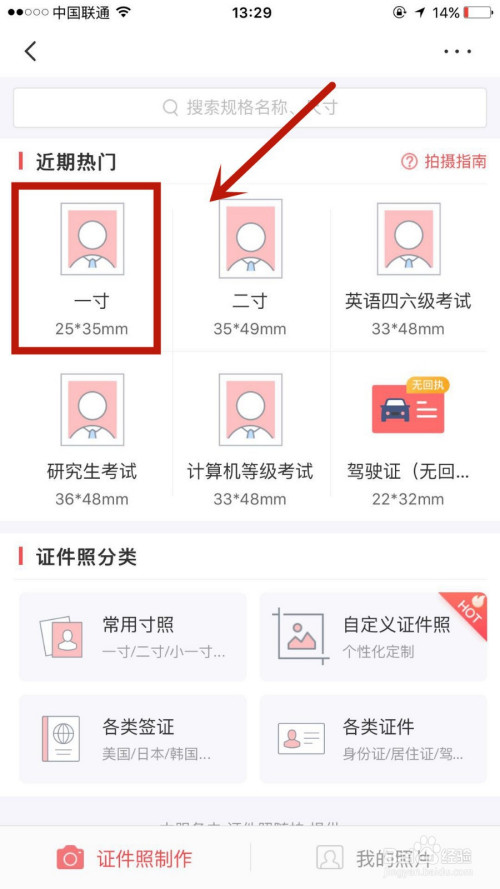 2.点击便捷办事下的证件照拍摄,选择本身需要的尺寸。
