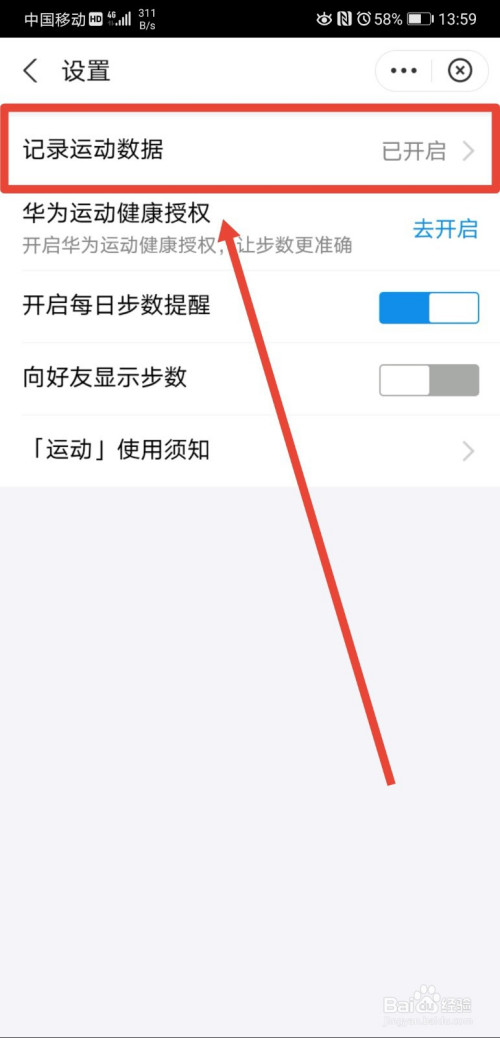 进入到设置页面后,可以看到有个记实活动数据功能,在该功能中即可对活动步数进行开启、封闭操作;