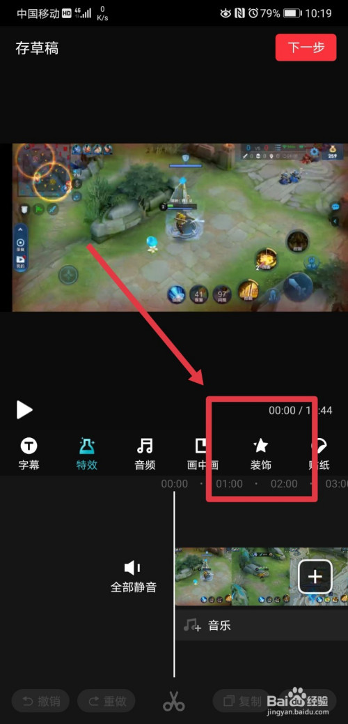 完当作视频素材导入后,再在视频剪辑页面找到装饰功能,然后点击进入;