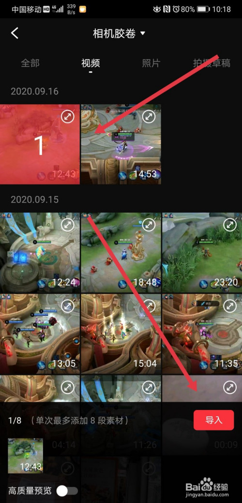 进入视频剪辑页面后,选择好需要建造的视频素材,然后点击导入;