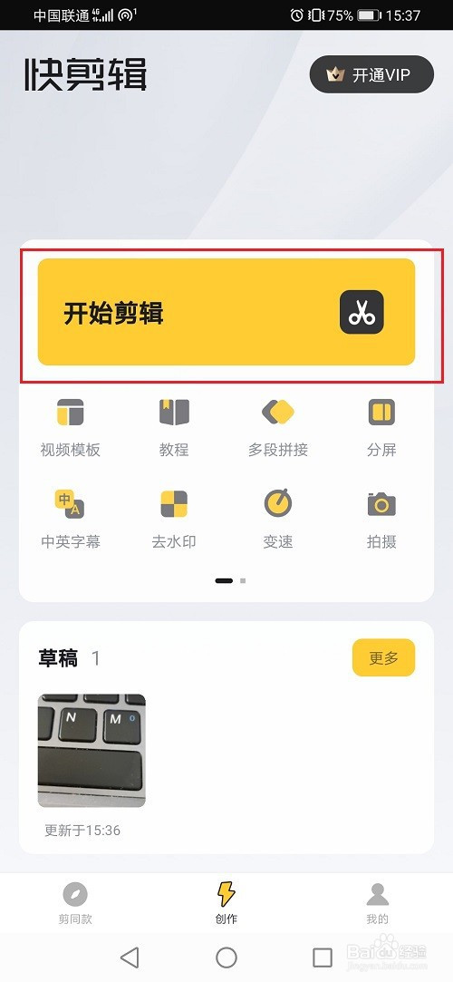 第一步打开快剪辑,进去创作界面,点击起头剪辑