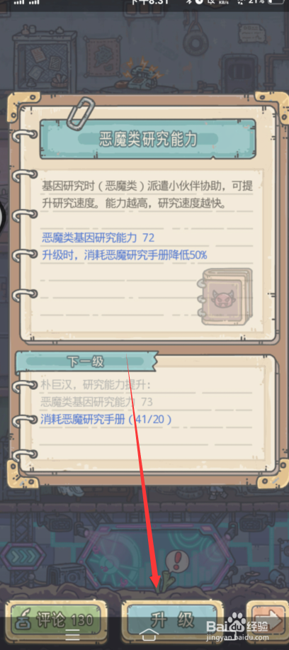 点击进级按钮完当作进级。