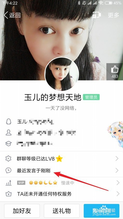 这是会打开该老友的详情页面,点击对阵讲话语的链接。