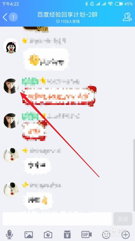 接下来在打开的QQ群聊天窗口,点击要查看的老友头像。