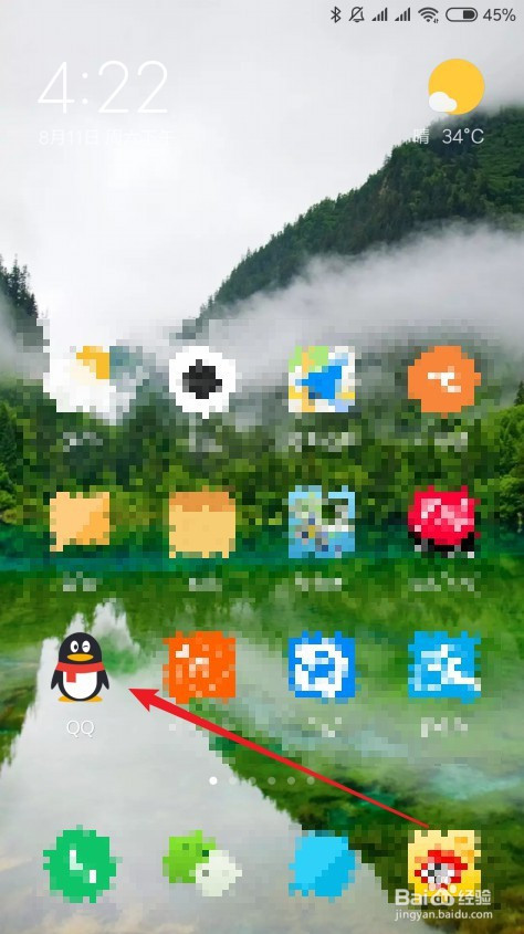 在手机屏幕上摆布滑动,点击手机QQ的图标。