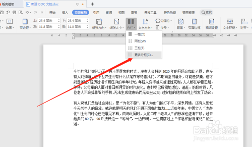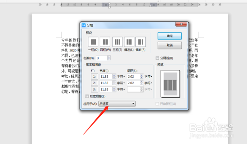 设置分栏,在分栏预设中设置合适的数目和宽度以及间距。