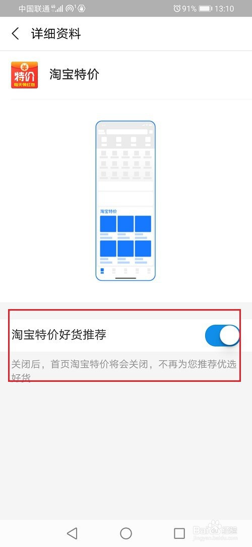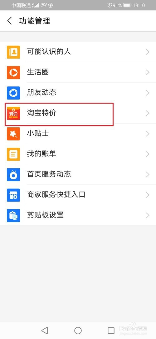 第五步点击之后,就封闭支付宝首页淘宝特价了,按照需要利用