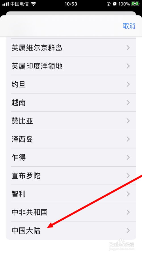 在界面最低端,找到并点击【中国大陆】。