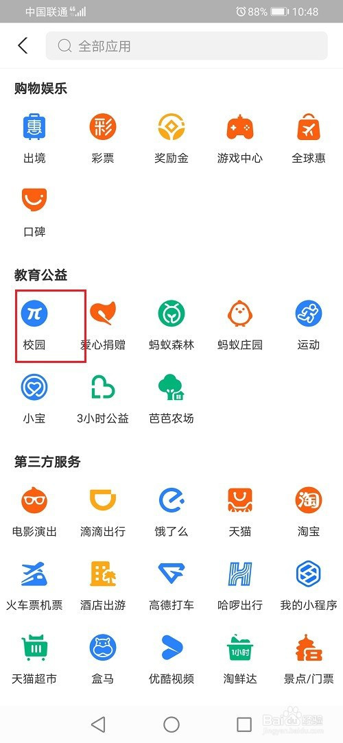 第四步进去支付宝校园之后,可以进行教育缴费也可以充值校园一卡通