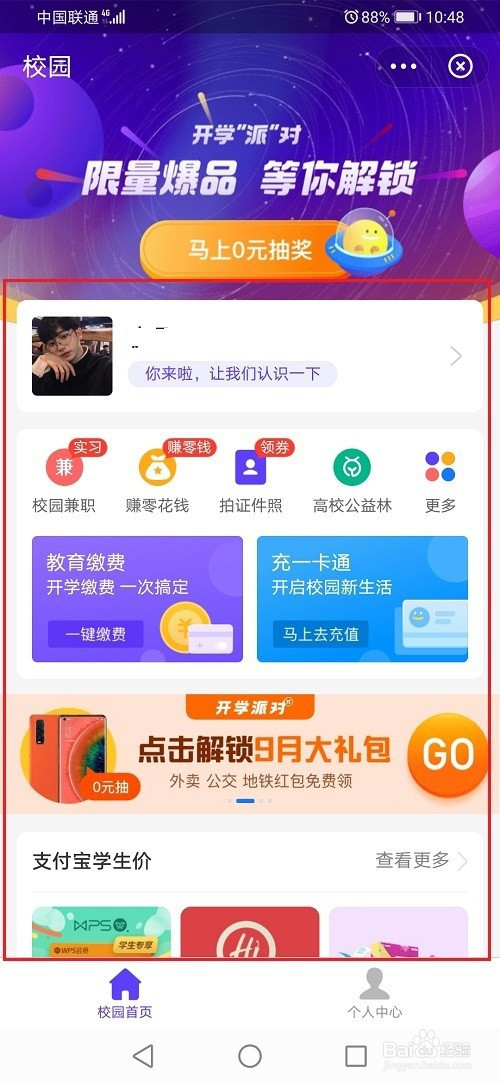 第五步我们也可以完美本身的校园信息,按照需要利用支付宝校园