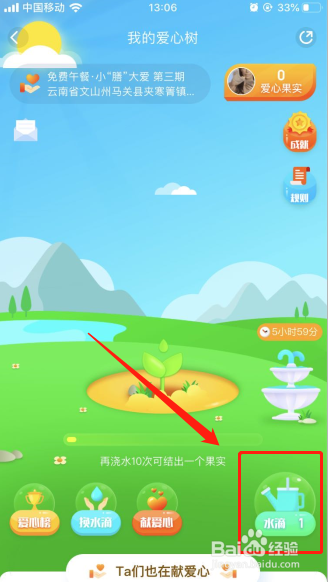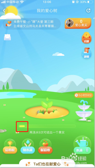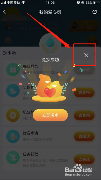 - 可以在第5步时直接点击底部的“当即浇水”给爱心树浇水。