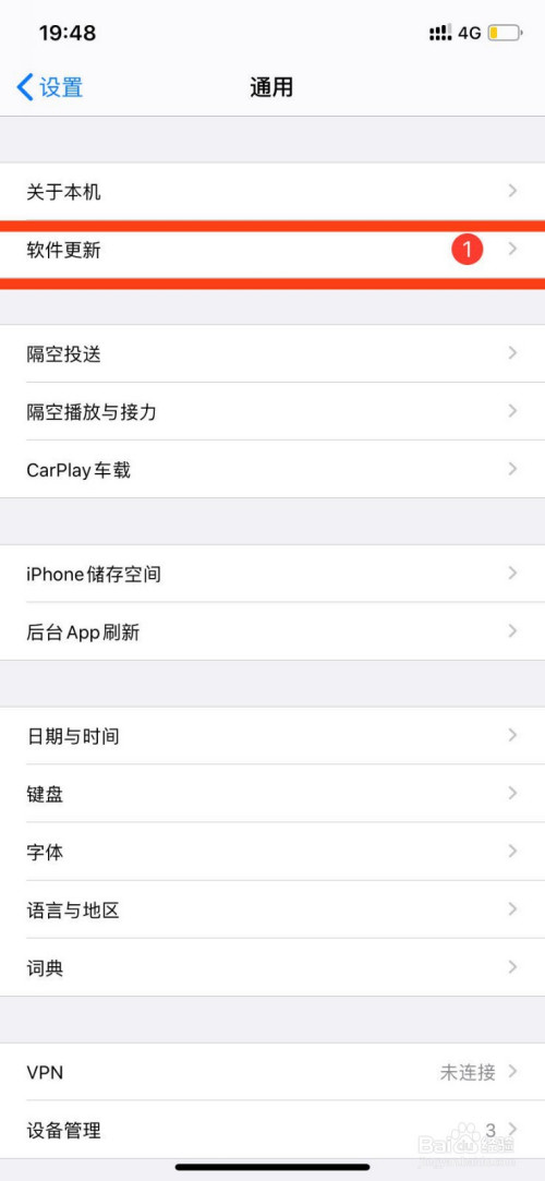 在通用中,进入上方的软件更新