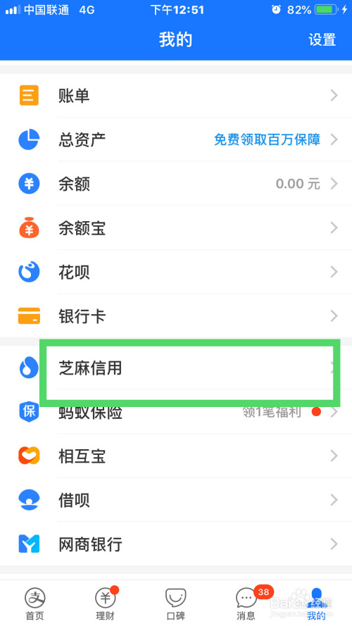 4.紧接着,在芝麻信用界面的顶端可以看到芝麻信用分