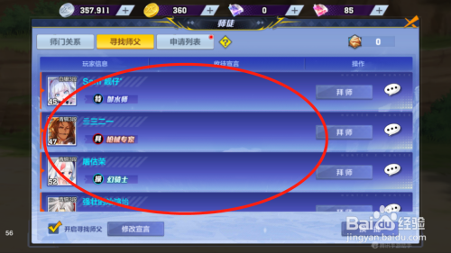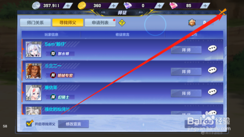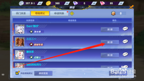 点击拜师按钮,进入拜师