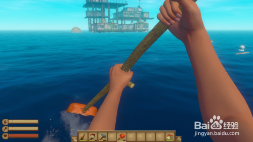 发现船不动时,可以用船桨划曩昔,然后上去寻找物资。