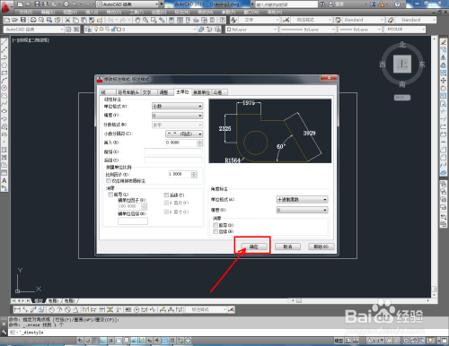 点击【新建】,按图示为新建的标注样式定名并设置好标注样式中的【线】、【符号和箭头】、【文字】、【调整】、【本家儿单元】的各个参数,点击【确定】确认。完当作后,将新建好的标注样式置为当前;