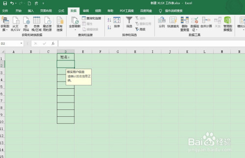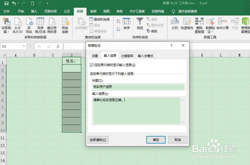 【5】选中需要输入信息的单位格,查看提醒信息。