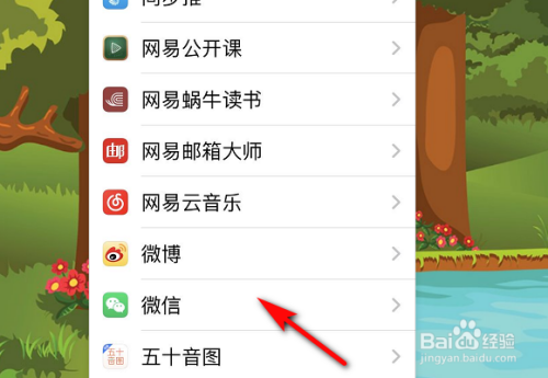 2、然后我们在应用列表点击【微信】。