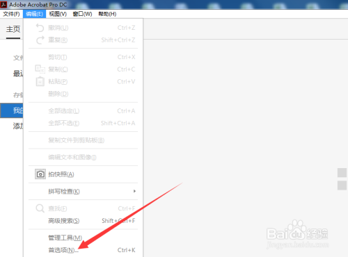 1、打开Adobe Acrobat软件,点击编纂。