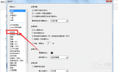 进入首选项后,在左侧找到平安性。