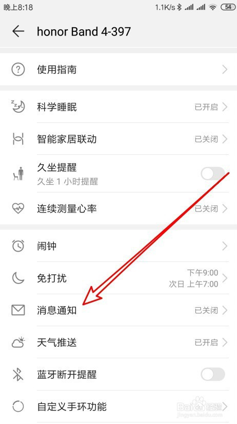这时会打开荣耀手环的页面,点击动静通知的设置项。