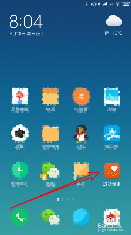 在手机屏幕上摆布滑动,点击活动健康的图标。