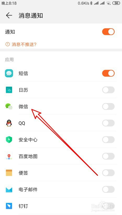 接着在打开的页面中找到微信的设置项。