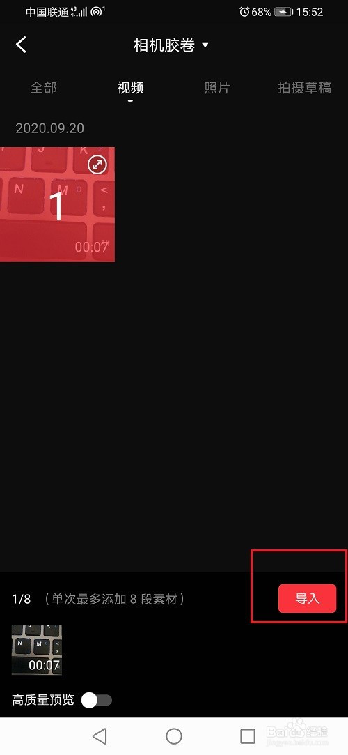 第二步进去之后,选择视频,点击导入