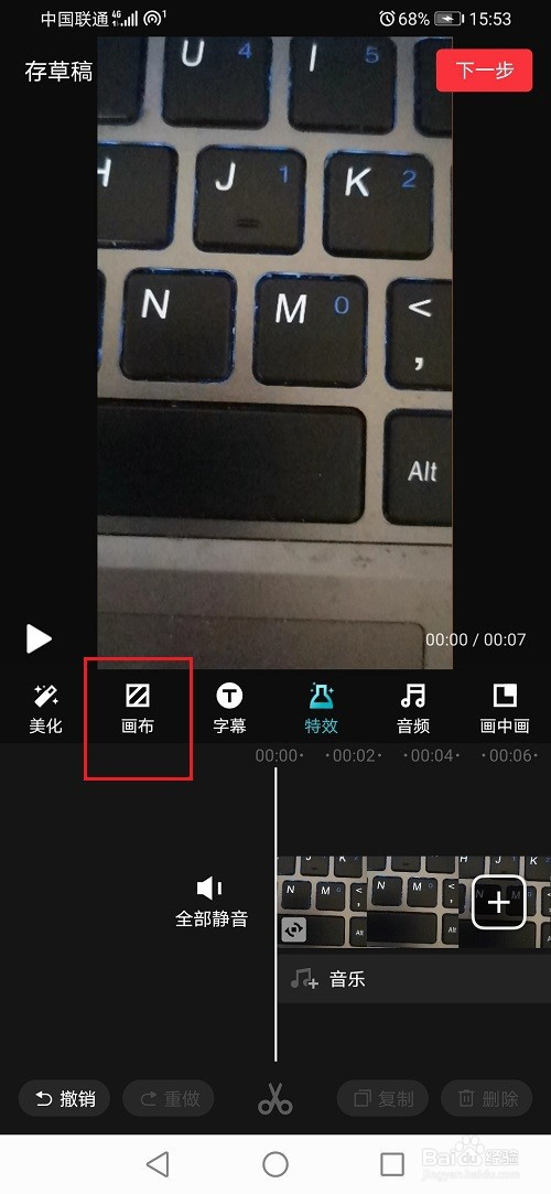 第三步进去视频剪辑界面之后,点击画布