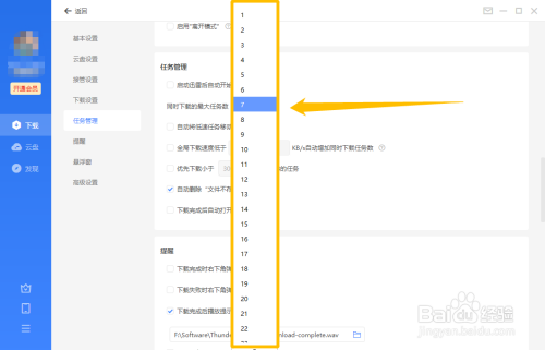 点击“同时下载的最大使命数”右侧的复选框后,在睁开的下拉框中选摘要设置的下载最大使命数即可。