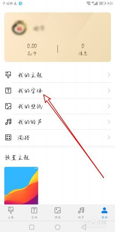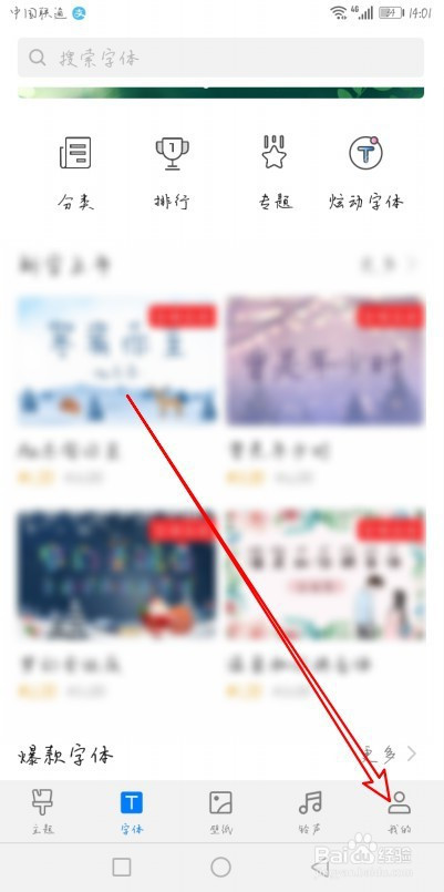 这时就会打开我的页面,点击我的字体的菜单。