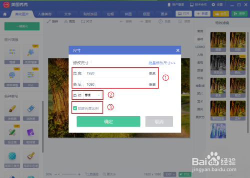 ●勾选了【锁定长度比列】,照片的宽度和高度比列将连结不变,点窜此中一个参数即可。
