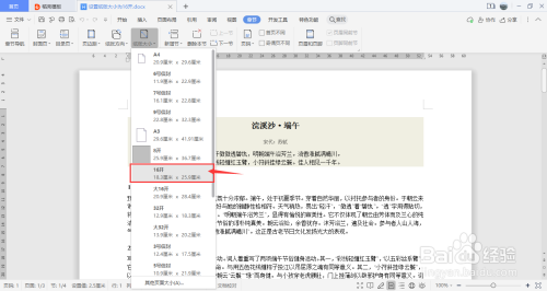 打开下拉框,选择此中的16开格局,点击即可利用。
