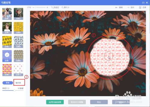 ●拖动”画笔大小“下面的滑块,设置画笔大小为”60像素“;