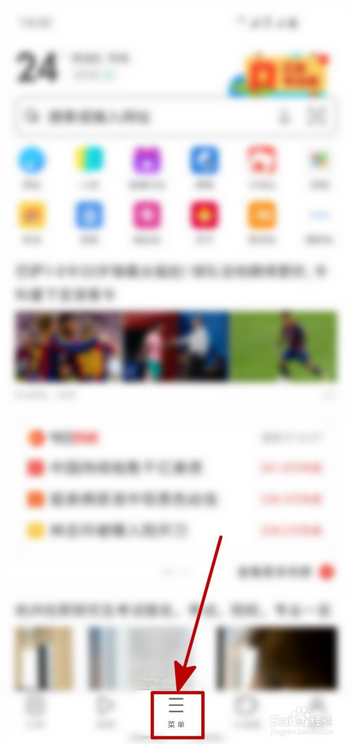进入UC浏览器的首页之后,点击页面下方的“菜单”。