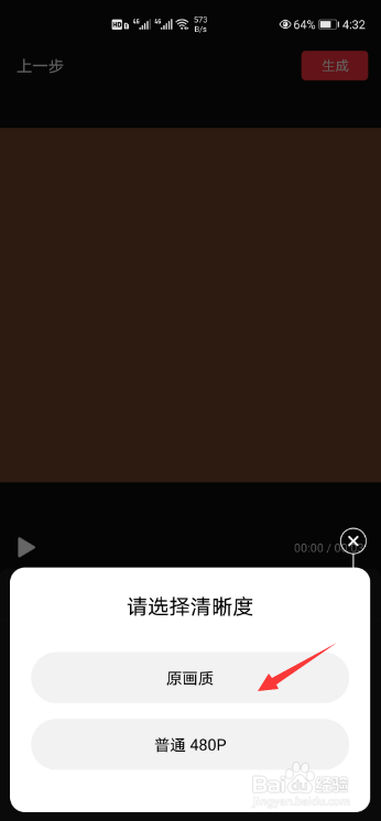 接下来点击“下一步”,最后点击“生当作”,拔取保留视频的清楚度,即可在手机相册中查看。