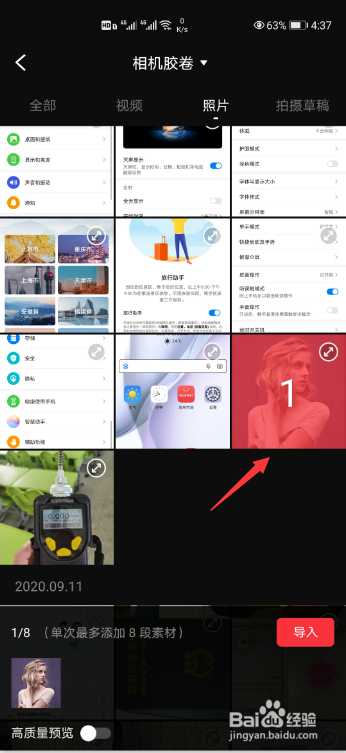在“相机菲林”中勾选需要添加的视频文件,单次最多添加8段素材。