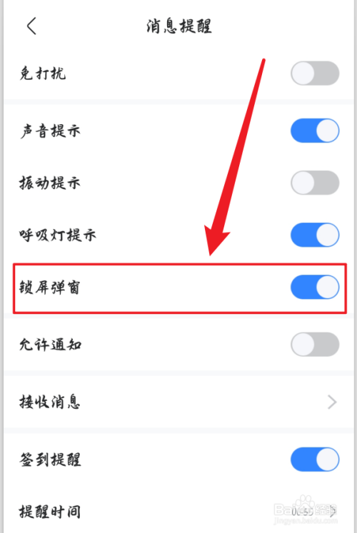 接着,找到动静提醒页面的【锁屏弹窗】选项。