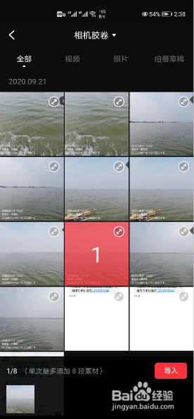 在“相机菲林”中勾选需要去水印的视频文件,单次最多添加8段素材。